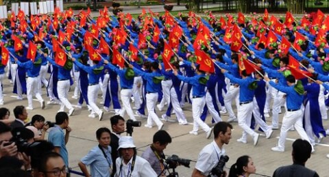 Đoàn viên Thanh niên Cộng sản Việt Nam diễu hành vào ngày 2/9/2015 - AFP