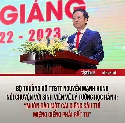 Ông Nguyễn Mạnh Hùng – Bộ trưởng Thông tin và truyền thông – lại khuấy động dư luận khi ví von :Muốn đào một giếng sâu thì miệng giếng phải rất to (1) lúc tham dự lễ khai giảng niên khóa mới tại Học viện Bưu chính Viễn thông.