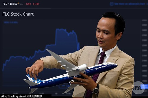 Giá cổ phiếu của FLC 'cắm đầu' sau thông tin ông Trịnh Văn Quyết bán chui 75 triệu cổ phiếu - AFP/ Trading View/ RFA Edited