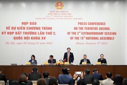 Sáng 5/1/2023, Quốc hội khóa XV khai mạc kỳ họp bất thường lần thứ 2. Kỳ họp dự kiến diễn ra trong 4 ngày, họp tập trung tại Nhà Quốc hội.