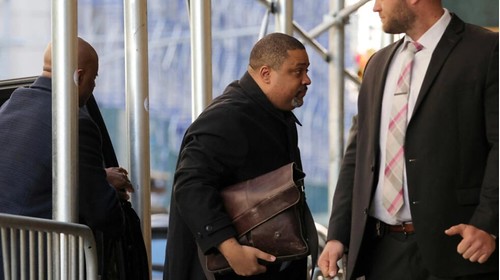 Biện lý Alvin Bragg (người cầm cặp) đến văn phòng Công tố Manhattan, New York, ngày 29/03/2023. Reuters – Andrew Kelly