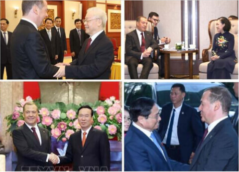 Cũng trong chiều ngày 22/5, Chủ tịch nước Võ Văn Thưởng đã tiếp Chủ tịch Đảng Nước Nga Thống nhất, Phó chủ tịch Hội đồng An ninh Nga Dmitry Medvedev. Tương tự Thủ tướng Phạm Minh Chính, phía Chủ tịch nước Võ Văn Thưởng khẳng định Việt Nam nhất quán thực hiện đường lối đối ngoại độc lập, tự chủ, đa phương hóa, đa dạng hóa ; luôn ghi nhớ sự ủng hộ và giúp đỡ mà nhân dân Liên Xô trước đây dành cho Việt Nam trong công cuộc xây dựng và bảo vệ Tổ quốc.