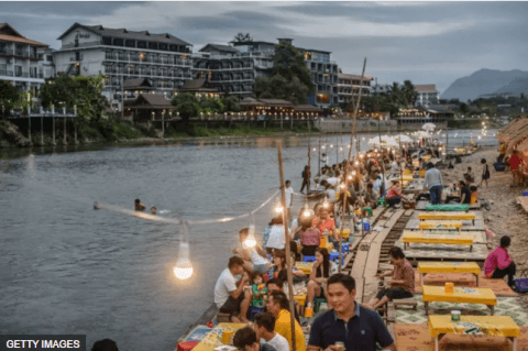 Vang Vieng là một thị trấn nhỏ ven sông ở miền trung nước Lào, thu hút những khách du lịch trẻ từ phương Tây đi du lịch bụi Đông Nam Á.