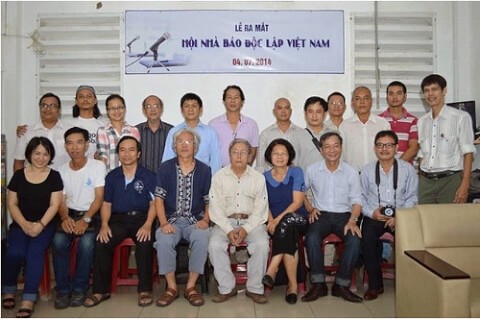 Lễ công bố chính thức thành lập Hội Nhà báo độc lập Việt Nam ngày 04/07/2014 do nhà báo Phạm Chí Dũng (đứng, góc phải), Chủ tịch Hội, nhà báo Nguyễn Tường Thụy (ngồi, thứ hai bên phải), Phó Chủ tịch Hội