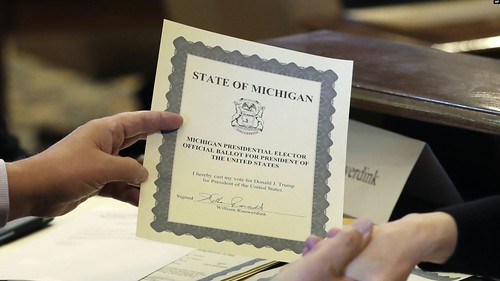 Đ ạ i c ử tri William Rauwerdink và lá phi ế u b ầ u t ổ ng th ố ng c ủ a ông vào ngày 19/12 năm 2016 ở Lansing, bang Michigan.