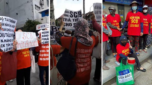 Nhiều cuộc biểu tình ôn hòa với hàng trăm người đã nổ ra trước các trụ sở, chi nhánh của SCB trên cả nước để đòi quyền lợi. Họ mặc áo đỏ với những dòng chữ in như "SCB lừa đảo" hay "Cầu cứu nhà nước, chính phủ cứu người dân bị lừa mua trái phiếu tại ngân hàng SCB".