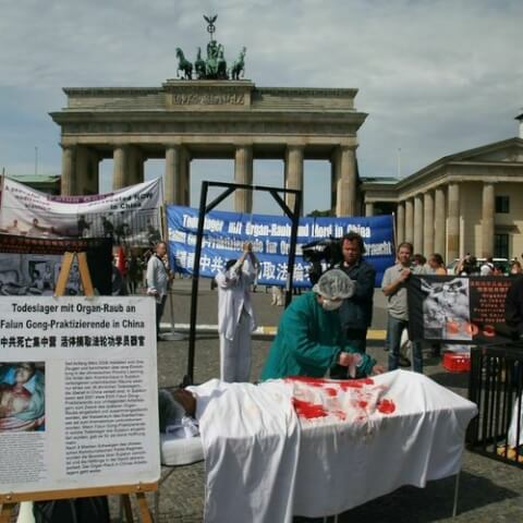 Biểu tình ở Berlin, Đức, năm 2007 tố cáo hành vi cưỡng bức cướp nội tạng ở Trung Quốc. © Wikipedia