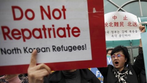Biểu tình trước sứ quán Trung Quốc tại Seoul yêu cầu Bắc Kinh không trả về Bắc Triều Tiên 7 người tị nạn, Seoul, le 27/03/2012. Reuters/Kim Hong-Ji