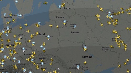 Trang Flightradar24 cho thấy không phận Belarus vắng vẻ hôm 24/05