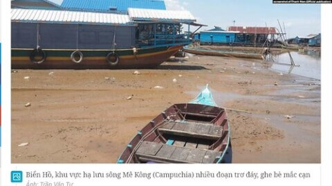 Biển Hồ cạn nước do dòng Mekong bị ảnh hưởng bởi biến đổi khí hậu và các đập trên thượng nguồn.