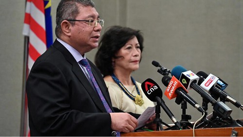 Ngoại trưởng Malaysia, Saifuddin Abdullah (trái) và đặc phái viên Liên Hiệp Quốc về Miến Điện, Noeleen Heyzer, họp báo chung tại tòa nhà Quốc Hội Malaysia, ở Kuala Lumpur, ngày 26/07/2022 via Reuters – Malaysian Department of Ìnormation