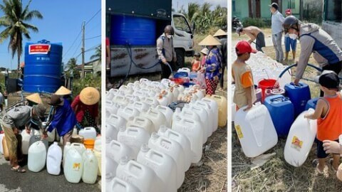 "Ngày nào cũng có xe bồn về để đưa nước sạch đến với bà con. Ít nhất một ngày về tầm 3 xe, nhiều thì còn hơn nữa".