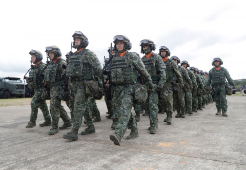 Binh lính Đài Loan rời khỏi đường hầm quân sự ngầm ở Kim Môn, Đài Loan, tháng 10 năm 2025 - Ann Wang / Reuters