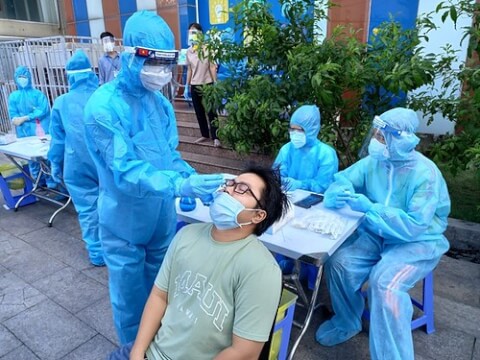 Xét nghiệm Covid-19 ở Hà Nội hôm 20/8/2021 - AFP