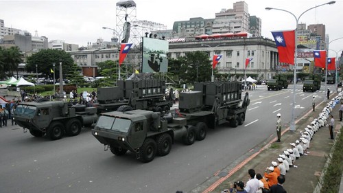Xe chở tên lửa địa đối không Patriot do Hoa Kỳ sản xuất trong lễ diễu binh mừng Quốc khánh Đài Loan, ngày 10/10/2007. AP - Wally Santana
