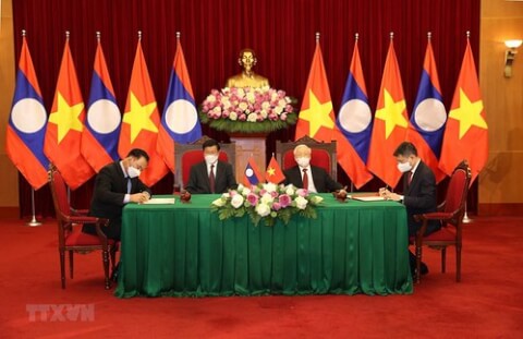 Việt Nam và Lào ký các thoả thuận hôm 28/6/2021 với sự chứng kiến của Tổng bí thư Nguyễn Phú Trọng và Chủ tịch Nhà nước Lào Thongloun Sísoulith - TTXVN