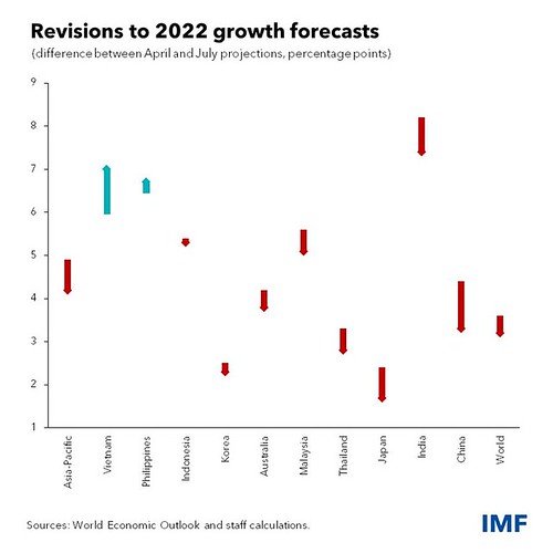 Biểu đồ minh họa của IMF dự báo hầu hết các nước Châu Á giảm tăng trưởng, ngoại trừ Việt Nam và Phillipines. (Nguồn : IMF)