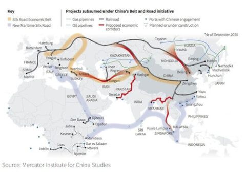 Bản đồ kế hoạch Những con đường tơ lụa mới của Trung Quốc. Mercator Institute for China Studies