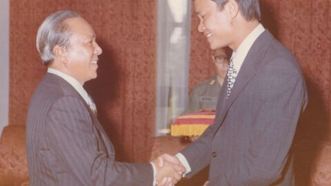Tổng thống Nguyễn Văn Thiệu trong một lần trao tặng huân chương cho ông Hoàng Đức Nhã