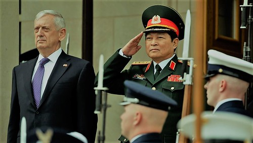 Bộ trưởng Jim Mattis hoan nghênh vai trò «lãnh đạo đang lên » của Việt Nam trong khu vực châu Á Thái Bình Dương. Một trong những cử chỉ tiêu biểu cho xu hướng quan hệ ngày càng được củng cố giữa Mỹ và Việt Nam là chủ nhân Lầu Năm Góc thông báo một hàng không mẫu hạm sẽ đến Việt Nam vào năm 2018.