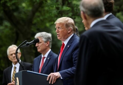 Tổng thống Donald Trump họp báo tại Vườn Hồng, Tòa Bạch Ốc, ngày 29/5/2020.