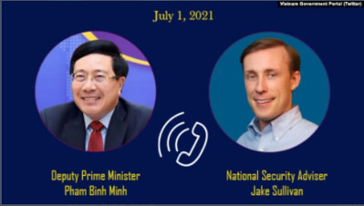 Tuyên bố mới được Nhà Trắng đưa ra nói rằng Cố vấn An ninh Quốc gia Hoa Kỳ Jake Sullivan đã có cuộc hội đàm qua điện thoại với Phó Thủ tướng Phạm Bình Minh hôm 1/7, trong đó ông Sullivan khẳng định với ông Minh về cam kết của Mỹ trong quan hệ đối tác toàn diện với Việt Nam.