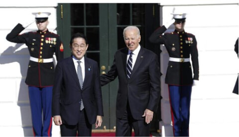 Hiếm khi nào Hoa Kỳ và Nhật Bản nêu đích danh Trung Quốc là "thách thức lớn nhất" về chiến lược. Trong cuộc họp báo chung hôm 11/01/2023 tại Washington, ngoại trưởng và bộ trưởng quốc phòng hai nước công bố kế hoạch tăng cường hợp tác an ninh để đối phó với hiểm họa hạt nhân Bắc Triều Tiên và nguy cơ Trung Quốc xâm chiếm Đài Loan. Trước khi hội kiến tổng thống Biden, thủ tướng Kishida đã công du nhiều nước Châu Âu và Canada để trình bày về học thuyết an ninh mới Nhật.