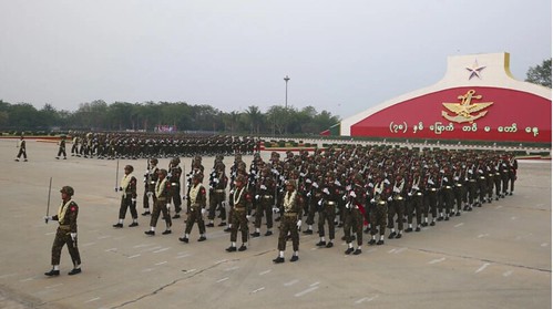 Quân đội Miến Điện duyệt binh Ngày Lực lượng Vũ trang lần thứ 78 tại Naypyitaw ngày 27/03/2023. AP - Aung Shine Oo