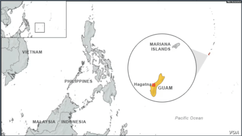 Vị trí đảo Guam trong vùng biển bắc Thái Bình Dương