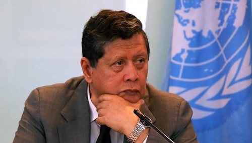 Trưởng đoàn điều tra về Miến Điện, ông Marzuki Darusman, họp báo tại tại văn phòng Liên Hiệp Quốc ở Jakarta, Indonesia, ngày 05/08/2019. Reuters/Sekar Nasly