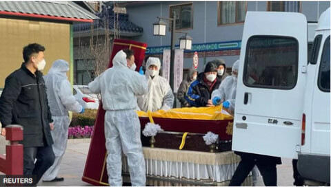 Vào chiều ngày thứ Bảy 17/12, một phóng viên của Reuters thấy có 30 xe chở quan tài phải dừng chờ trên đường đến nhà tang lễ Đông Giao, một trung tâm hỏa táng được chỉ định dành riêng cho các nạn nhân Covid ở Bắc Kinh.