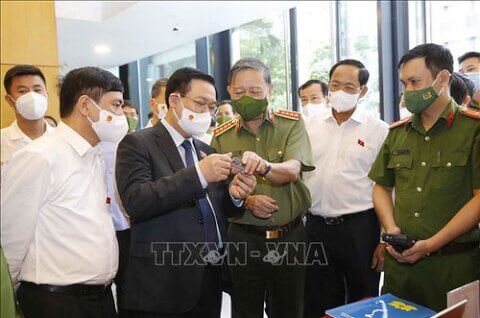 Ảnh minh họa : Bộ trưởng Bộ Công an Tô Lâm giới thiệu với Chủ tịch Quốc hội Vương Đình Huệ về tính năng hiện đại của Căn cước công dân có gắn chíp điện tử ngày 27/08/2021.
