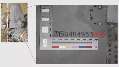 Mảnh vỡ của vũ khí Kh-101 được tìm thấy sau vụ tấn công vào Kiev vào tháng 6/2022. © Conflict Armament Research