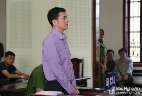 Thầy giáo Nguyễn Năng Tĩnh tại phiên tòa án ở Nghệ An hôm 15/11/2019 – Báo Nghệ An