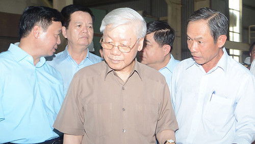 Tổng bí thư - Chủ tịch nước Nguyễn Phú Trọng trước khi bị đột quỵ hôm 14/04/2019 tại Kiên Giang - Tranh minh họa