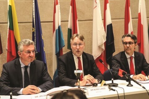 Ông Bernd Lange (giữa) trong một cuộc họp của Hội đồng Châu Âu