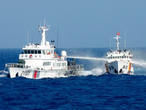 Tàu hải cảnh của Trung Quốc nhìn từ tàu cảnh sát biển Việt Nam ở Biển Đông hôm 14/5/2014 - Reuters