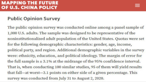 Ảnh chụp màn hình phần giới thiệu về khảo sát với công chúng Mỹ trong báo cáo "Định hình tương lai chính sách của Mỹ với Trung Quốc" của Trung tâm Nghiên cứu chiến lược và quốc tế (CSIS)