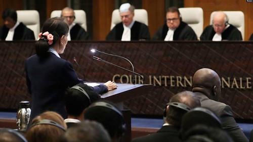 Bà Aung San Suu Kyi hôm 10/12 đã ra Tòa án Công lý Quốc tế Liên Hiệp Quốc ở La Haye, Hà Lan, để bảo vệ cho đất nước Myanmar của bà bị cáo buộc phạm tội diệt chủng đối với người thiểu số Hồi giáo Rohingya, theo Reuters.