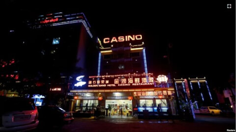 M ộ t t ổ h ợ p nhà hàng, khách s ạ n và sòng b ạ c ở Sihanoukville, Campuchia. Hàng ngàn ng ườ i Vi ệ t đã b ị l ừ a bán sang Campuchia đ ể làm vi ệ c trong các sòng bài.