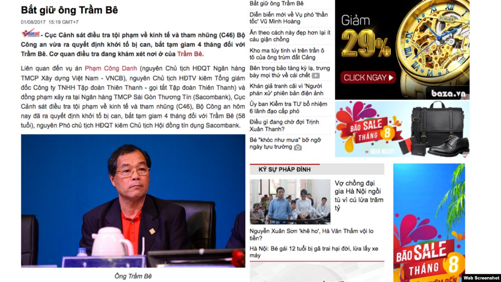 Cần lưu ý là ngày 1 tháng 8 vừa qua, khi tống giam ông Trầm Bê, Cục Cảnh sát Điều tra tội phạm về Tham nhũng và Kinh tế của Bộ công an Việt Nam cho biết, ông Trầm Bê phải chịu trách nhiệm hình sự về việc lấy tiền của Sacombank cho ông Phạm Công Danh (Chủ tịch Hội đồng Quản trị Ngân hàng Xây dựng Việt Nam – Việt NamCB) vay 1.800 tỉ. Hành vi này có dấu hiệu “cố ý làm trái quy định của nhà nước về quản lý kinh tế gây hậu quả nghiêm trọng”.