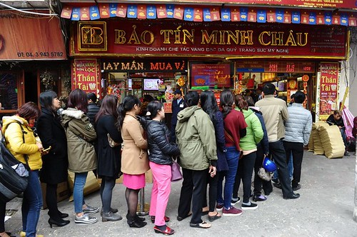 Người dân xếp hàng vào một tiệm vàng ở Hà Nội trước đây. AFP.