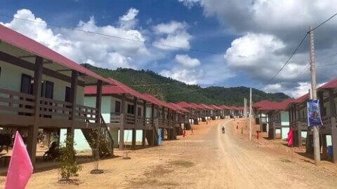 Cái thôn mới do doanh nghiệp xây tặng đồng bào ở đây, thoạt nhìn thì khá đẹp : 56 ngôi nhà sàn xây bằng xi măng và sắt thép nằm sát nhau, được đánh số, bám đều hai bên con đường chính của thôn như cách phân bố cư trú thường thấy tại một thị trấn nhỏ. Sau lưng các ngôi nhà mới, đất đã được chặt bậc thang vuông vắn, được phủ lớp đất màu trên mặt thành các khu ruộng mà người dân sẽ dùng để trồng lúa nước. Thôn mới có điện, nước sạch, internet, điểm trường học, nhà sinh hoạt cộng đồng, mỗi hộ dân được tặng 1 tivi 43 inches, một con bò để làm vốn chăn nuôi trồng trọt và được cấp gạo miễn phí trong ba năm.
