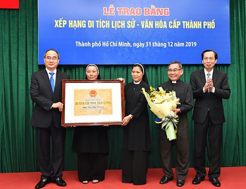 Bí thư thành phố Hồ Chí Minh, ông Nguyễn Thiện Nhân, vào sáng ngày 31/12/19 trao bằng xếp hạng di tích lịch sử-văn hóa cấp thành phố cho Nhà thờ Thủ Thiêm và Tu viện Hội Dòng Mến Thánh Giá Thủ Thiêm. Courtesy : sggp.org.vn