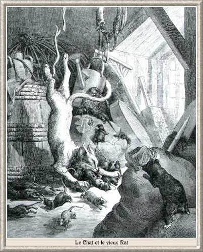 Minh họa trong ngụ ngôn La fontaine "Mèo và lão chuột"