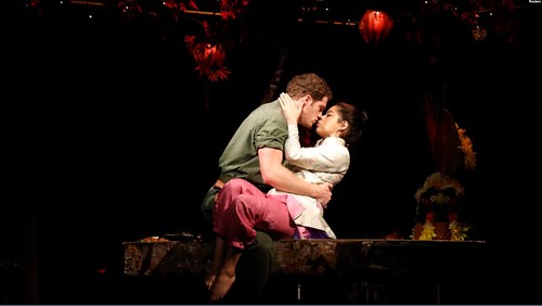 Diễn viên Alistair Brammer và Eva Noblezada đóng vai Chris và Kim trong vở nhạc kịch "Miss Saigon" được trình diễn tại nhà hát Prince Edward ở London vào ngày 19/5/2014.