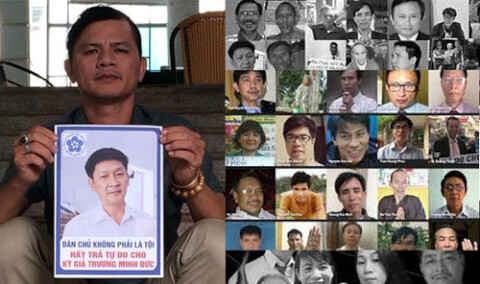 Nhạc sĩ Trần Vũ Anh Bình và hình những tù nhân lương tâm Việt Nam đang còn bị giam giữ