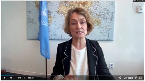 Bà Ilze Brands Kehris, Trợ lý Tổng thư ký Liên Hiệp Quốc về Nhân quyền, trình bày báo cáo về đe dọa và trả thù năm nay tại kỳ họp thứ 45 của Hội đồng Nhân quyền Liên Hiệp Quốc ngày 30/9/2020. Photo Web UN TV.