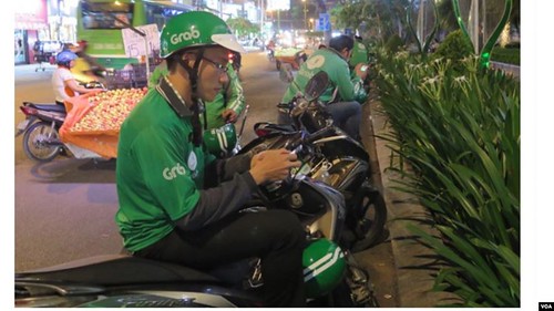 Phạm Quốc Thái đang chạy Grab. (Hình : Trích xuất từ trang web báo Thanh Niên)
