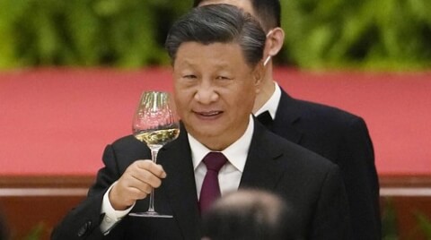 Chủ tịch Trung Quốc Tập Cận Bình nâng ly ở tiệc chiêu đãi tại Đại Lễ Đường Nhân Dân trước kỳ nghỉ lễ Quốc Khánh ở Bắc Kinh, Trung Quốc ngày 30/09/2022. AP - Ng Han Guan